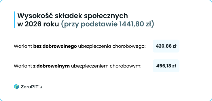 Wysokość składek w 2026 roku (dla podstawy 5 652zł) prezentuje się następująco: